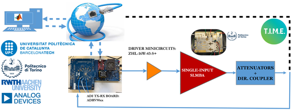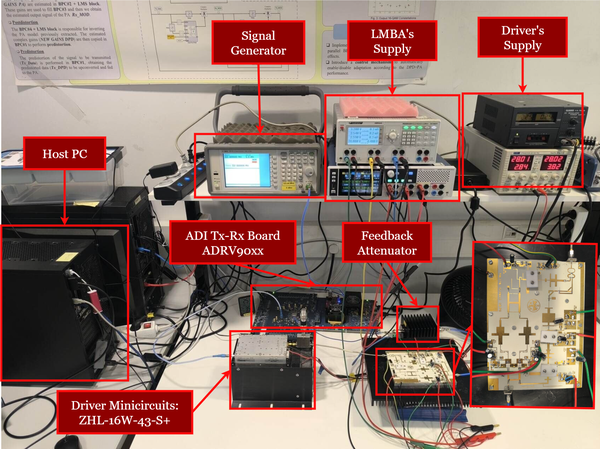 In the intermediate phase of the project, the focus is on the linearization of a Load Modulated Balanced Amplifier (LMBA). Operating with a center frequency of 3.7 GHz, the LMBA features a single-input architecture based on GaN-based Power Amplifier (PA) provided by Dr. Vittorio Camarchia and Dr. Anna Piacibello from PoliTO. The peak output power level from the LMBA is limited to approximately 45 dBm.
